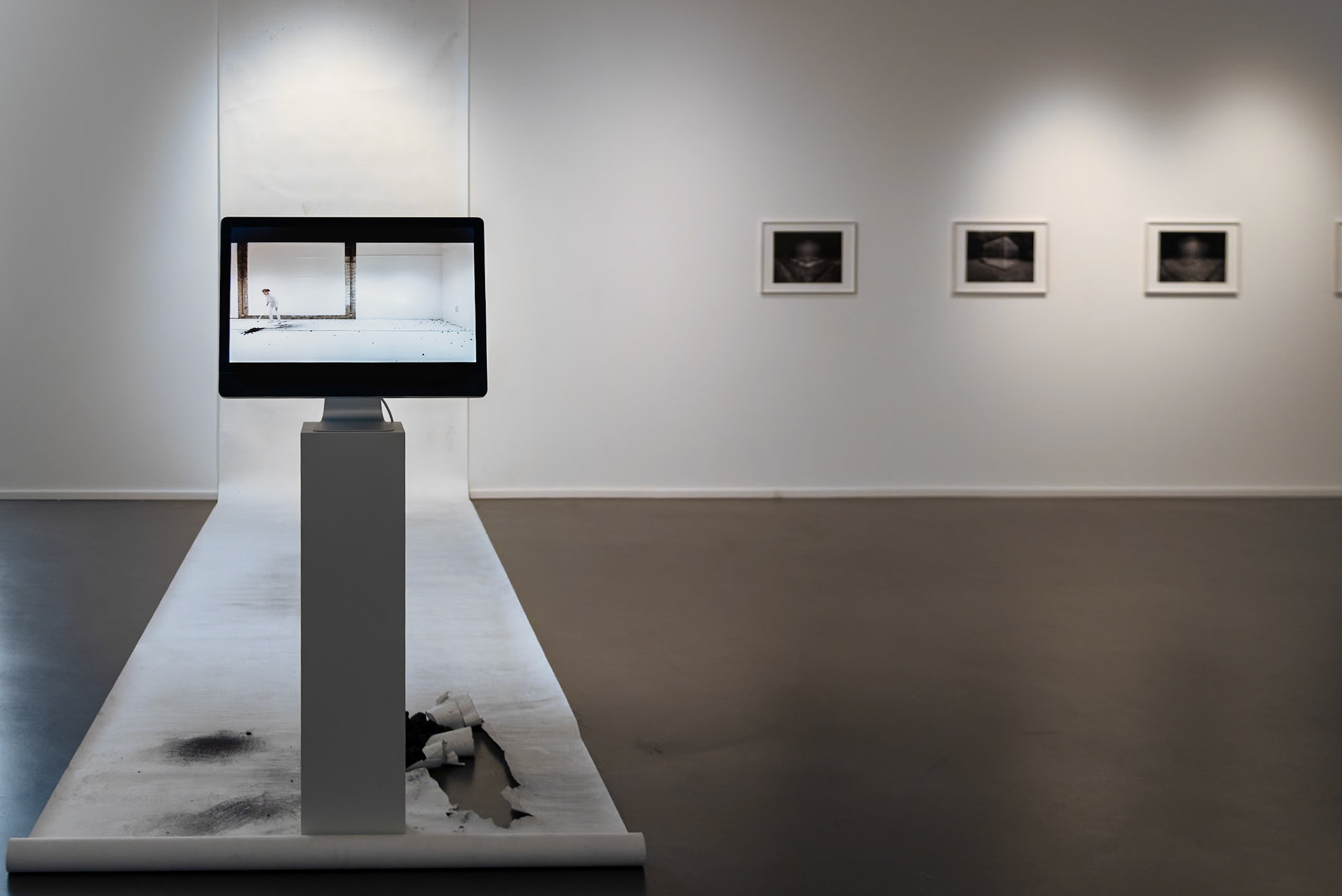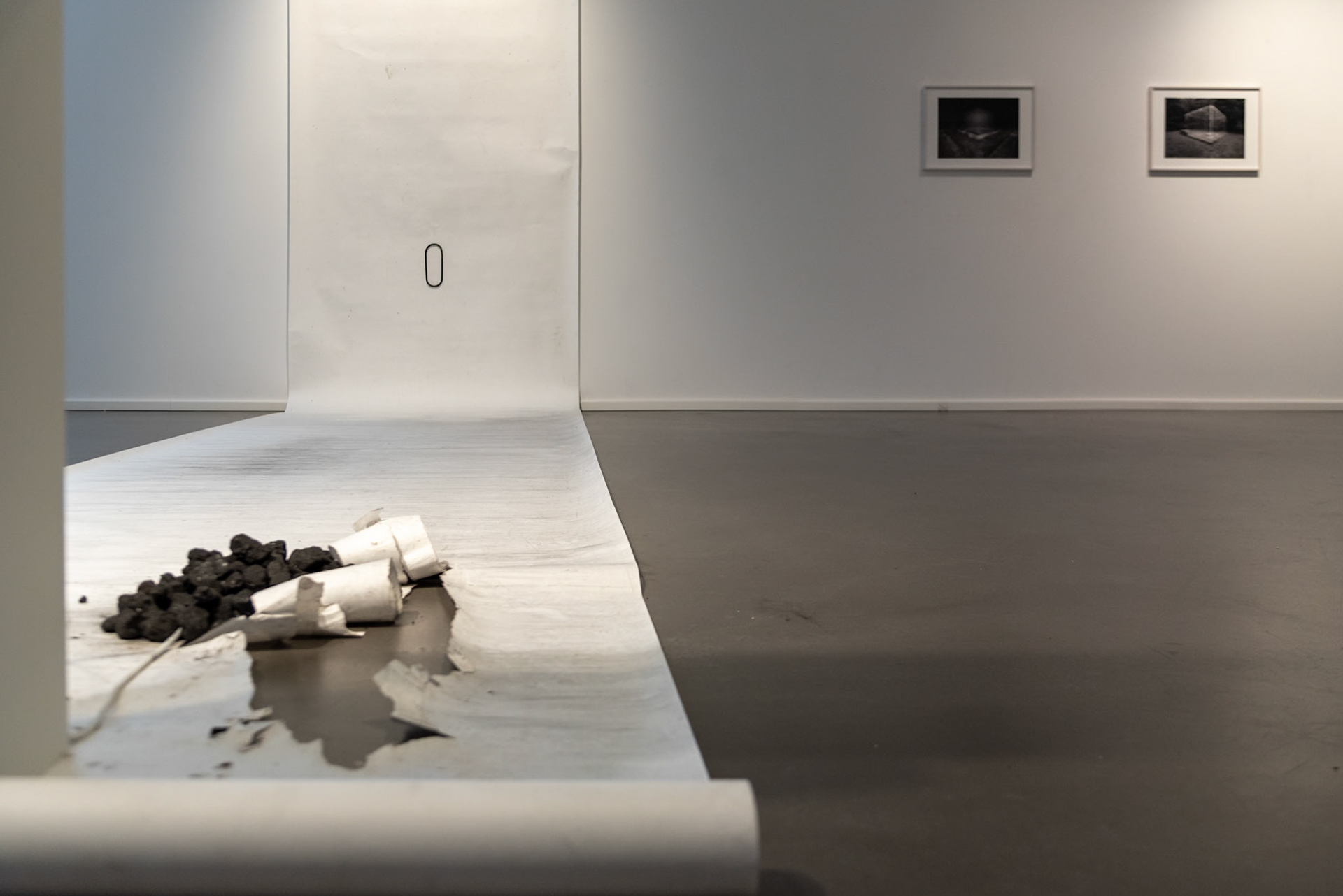 In Pia Treibers Werk „Kohle verschleudern“ finden wir einen Gedanken, der in vielfacher Weise interpretierbar ist. Treiber schleudert Steinkohle, das ist ein Faktum. Sie tut dies, indem sie die Kohle mit dem Golfschläger anvisiert, ausholt, schlägt. Ziel ist es die Markierung, eine schwarze Null an der gegenüberliegenden Wand zu treffen. Dabei entstehen, ausgehend von ihrer Position, strahlenförmige Kreise, deren Kohlespur im starken Kontrast zur weißen Umgebung und der - selbst in weiß gekleideten - Künstlerin steht und eine Kohlezeichnung entsteht. Indem sie dieser so klaren Tätigkeit unermüdlich nachgeht, eröffnet sie Fragen beim Betrachter. „Kohle Verschleudern“, steht diese Performance womöglich als Sinnbild einer dekadenten, übersättigten Gesellschaft, wie der Umgang mit einem Golfeisen nahelegt, das doch allzu oft mit dem Sport der Gutbetuchten gleichgesetzt wird und als Statussymbol gilt? Oder geht es hier um die reale Kohle, also den Verbrauch von Ressourcen, der in den letzten 150 Jahren so rasant anstieg wie noch nie in der Menschheitsgeschichte? Gleichwohl, welche Kohle gemeint ist, der Betrachter erahnt, dass die Performance mehr ist als reiner Selbstzweck. Die Performance von Pia Treiber fand in der Handwerkergasse des UNESCO-Weltkulturerbe Völklinger Hütte (ehemaliges Eisenwerk) statt. Die Künstlerin beschäftigte sich darin mit der politischen Entscheidungsfindung in Krisensituationen. Entscheidungen, die einen ökologischen Wandel gegebenenfalls beschleunigen oder bremsen können und nahm konkret Bezug auf die bundespolitische Entscheidung, zwei Steinkohlekraftwerke, die zu Anteilen den Pfalzwerken gehören, im Oktober 2022 aus der Notreserve wieder ans Netz zu bringen und bis mindestens März 2024 am Netz zu lassen. Dabei dienen die Kohlespuren auf dem Papier als Metapher für die schleichenden Veränderungen und Zerstörung unserer Umwelt, die anfangs unbemerkt bleibt, sich jedoch sukzessiv ausbreitet. Text von Denise Kamm